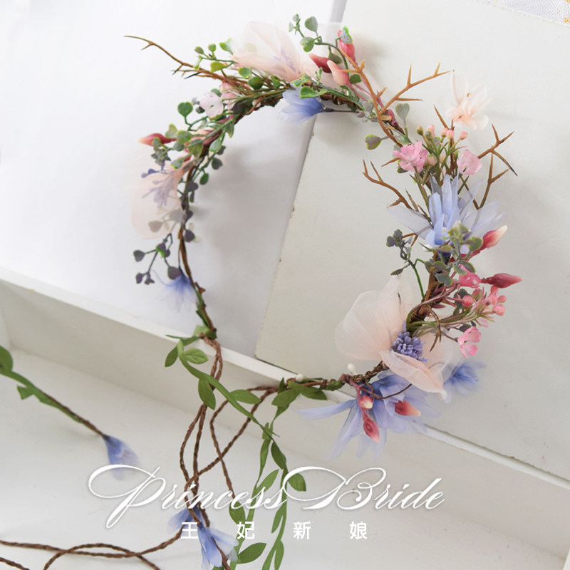 New Ultra Fairy Flowers Rings Sen Women's Dreamy Blue Vines Korean Style Bride Headwear Holiday Photo Seaside Scenic Spot Hair Accessories