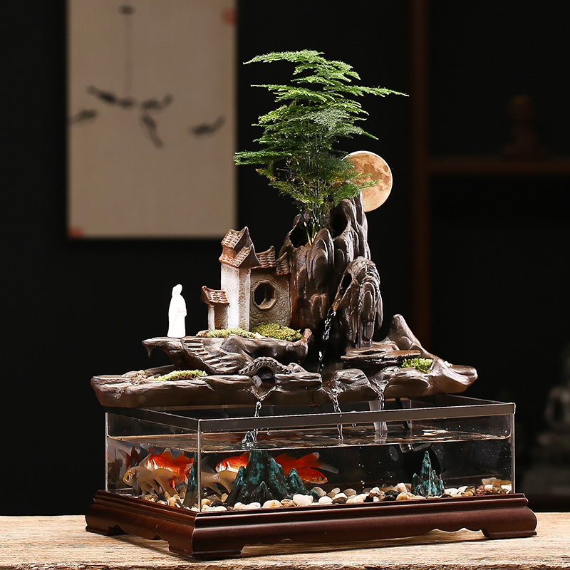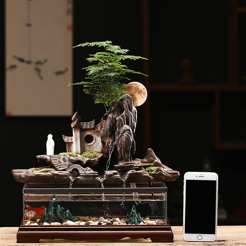 Creative water device ornaments ceramic feng shui lucky waterfall fish tank living room office desktop decoration opening gift