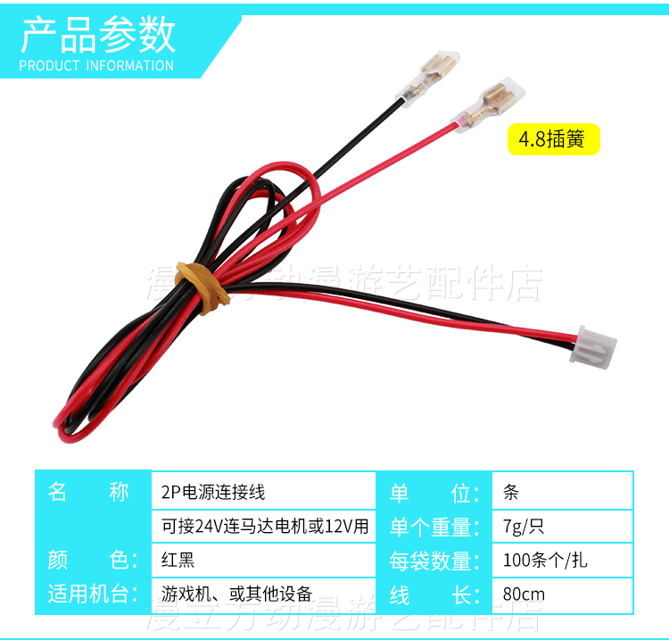 Game console accessories 24V mobile power cable suitable for lighted rocker button 2P red and black line 12V plug line
