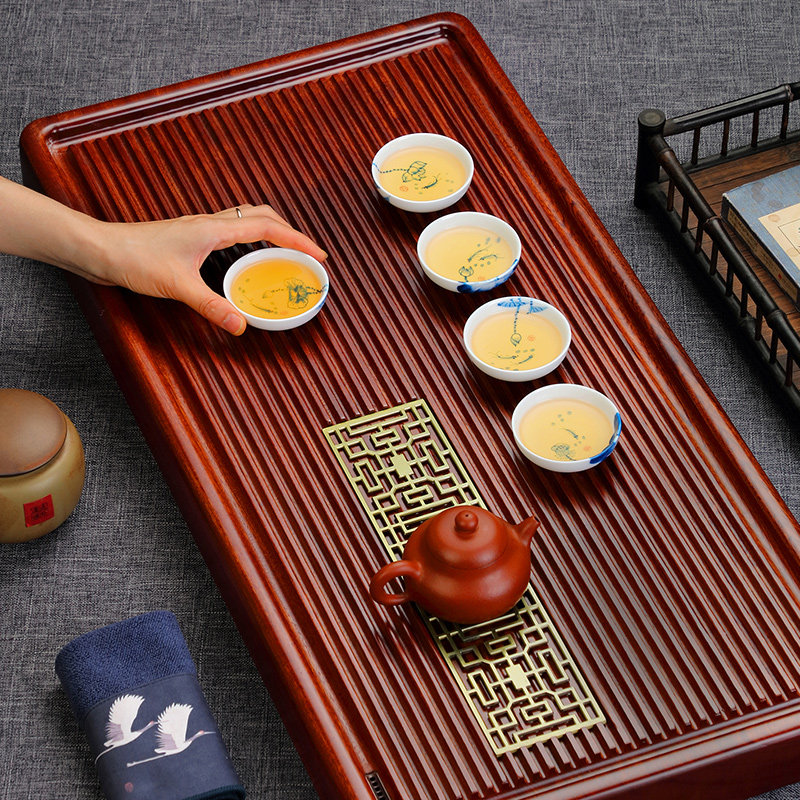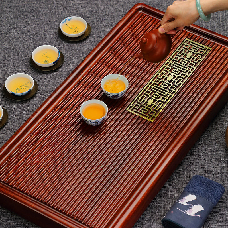 Tangshun tea table solid wood tea tray single-layer drainage type Kung Fu tray simple household whole rosewood large tea sea