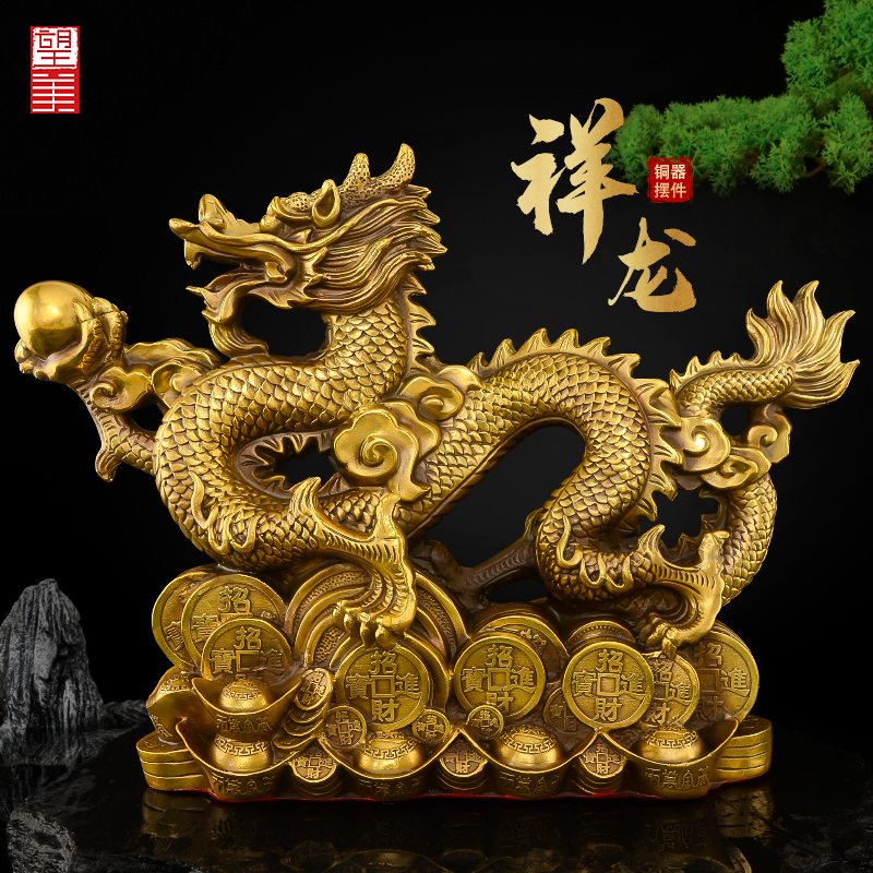 Bronze Dragon Pendulum Piece Craft Gift Pendulum decoration pure bronze Qinglong Living room Sheng Shicheng Dang Pao Xiang Long No. 1 Xiao Long