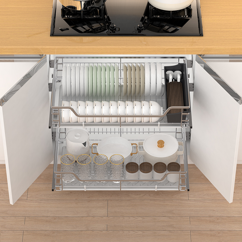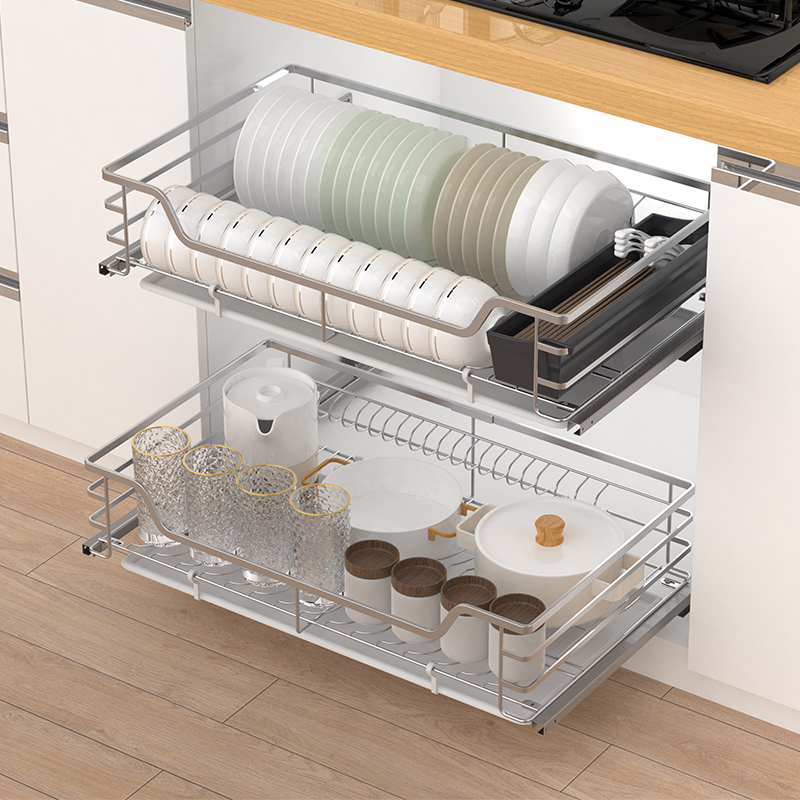 Sea Sberg Pull Basket Kitchen Integral Cupboard 304 stainless steel double decker Drawer Bowl open Saucer Blue Bowl Rack
