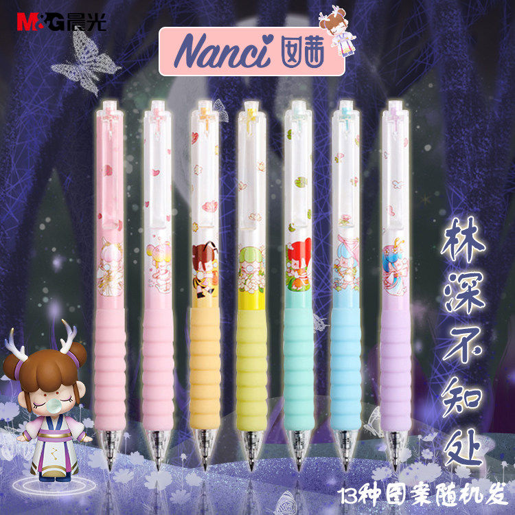Chenguang Lin Shen does not know where the blind box pen J0602 H7316 Nanxi Nanci spring and summer long little fox fairy press the gel pen accessories soft rubber sleeve cloud handshake black water-based pen stationery