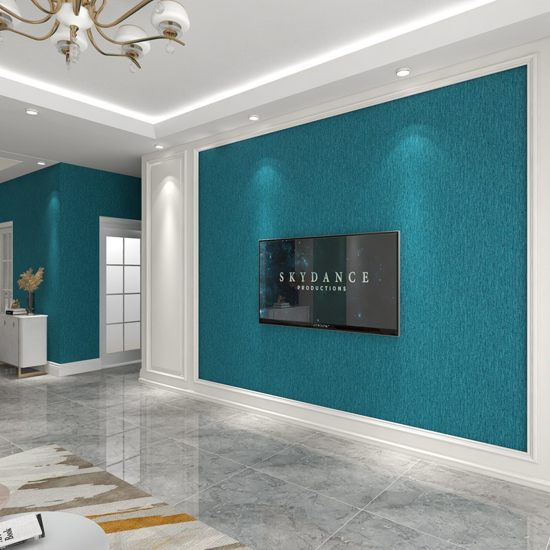 High-grade peacock blue background wall pure color seamless wall covering whole house high-grade gray thickened yarn wall covering modern simplicity