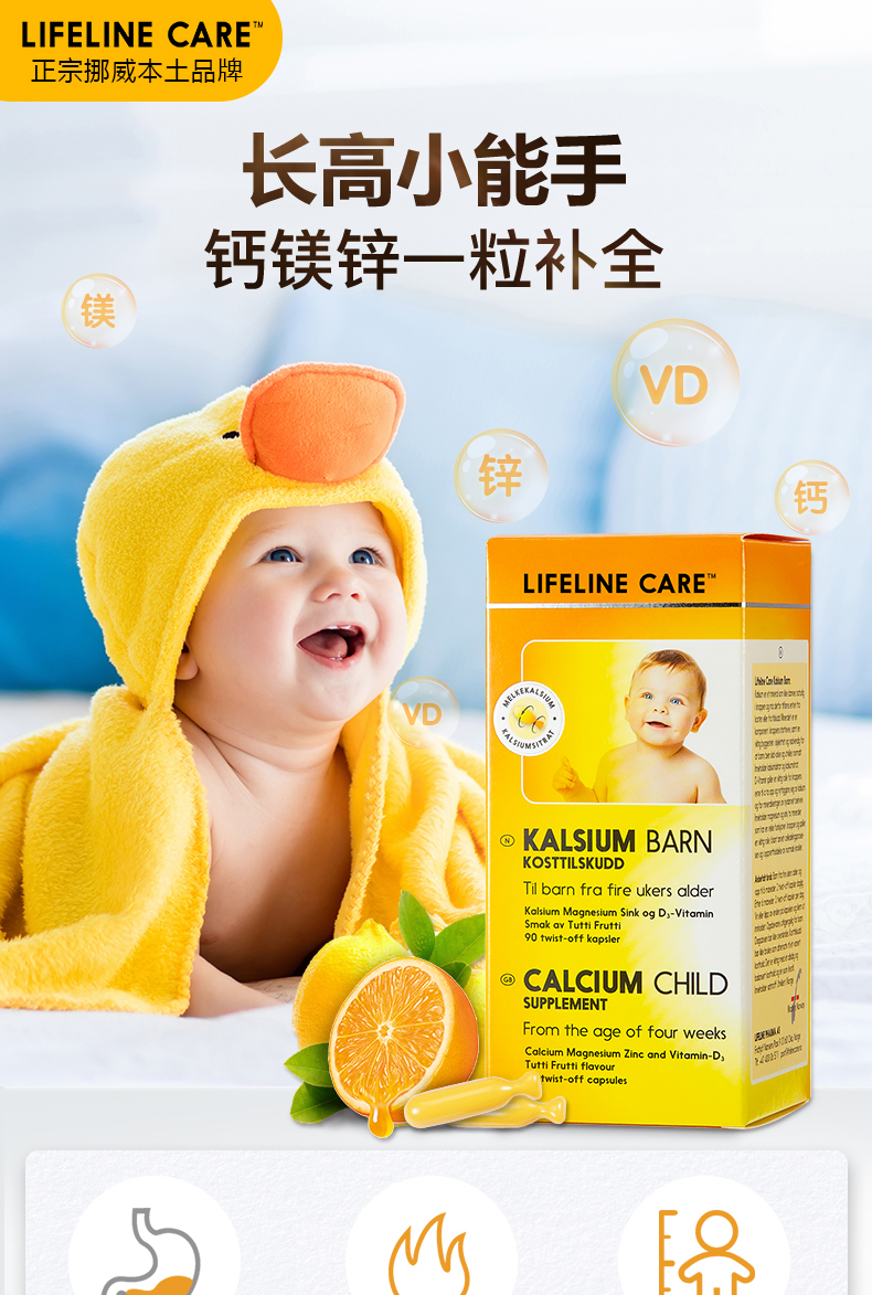 Norwegian Lifeline Care baby newborn fish oil milk calcium liquid calcium magnesium supplement zinc VD easy to absorb 90 grains