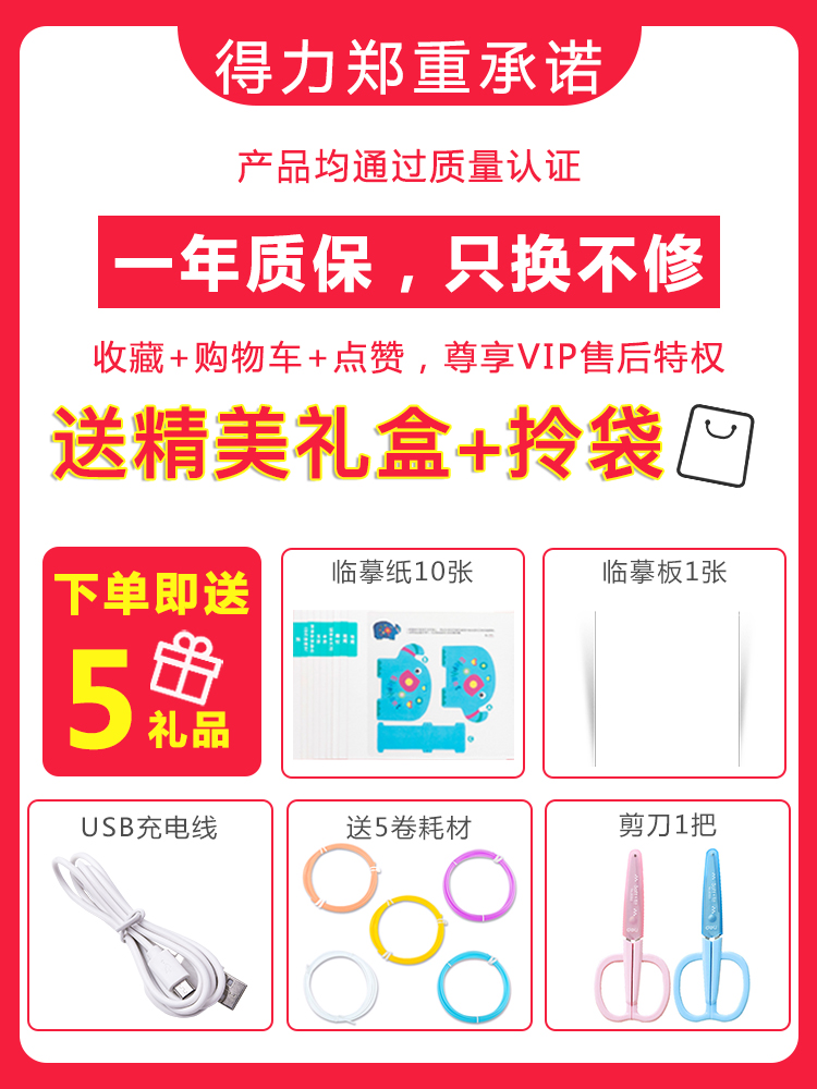Deli 3d printing pen 3D children's three-dimensional low temperature wireless drawing pen supplies Net Red stationery set gift box for primary school students senior school supplies One and two grade June 1 Children's Day gifts