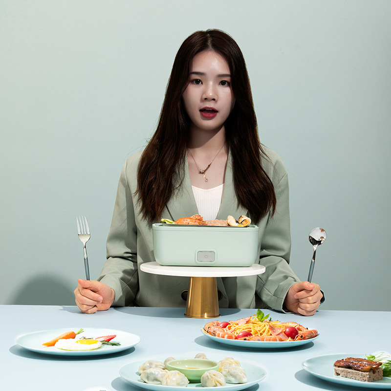 Long Iridescent Electric Lunch Box Digi office Mini double-decker steamed rice with rice heating insulation One-key speed heat