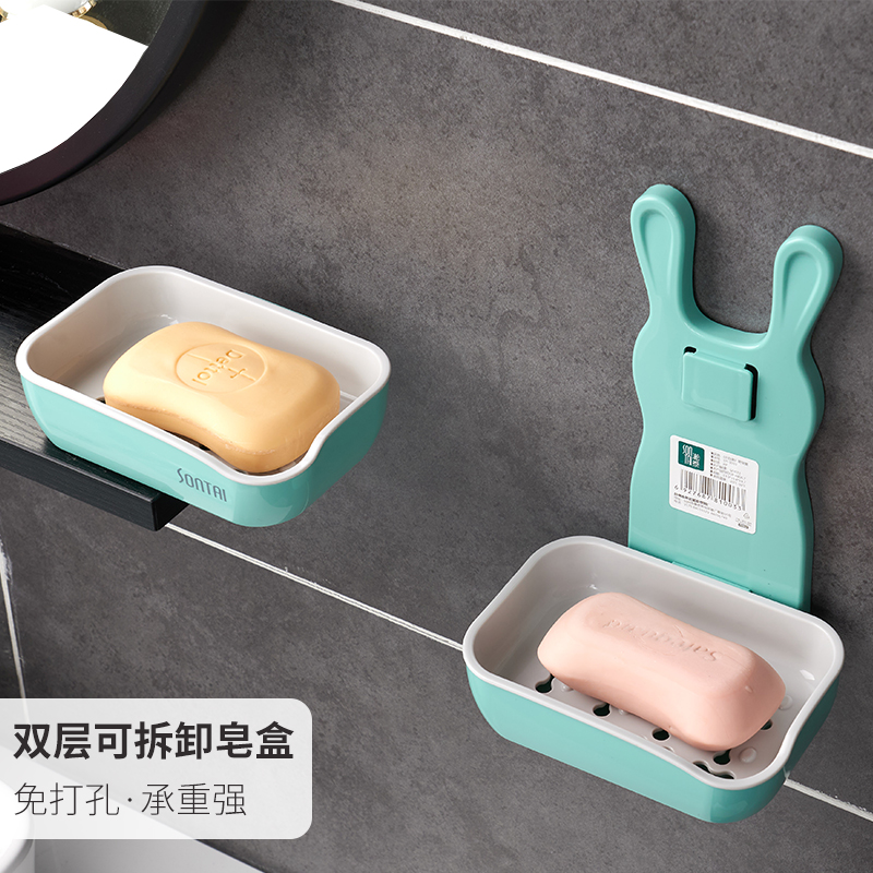 Soap case free of punching wall-mounted suction cup creative double makeup room big number home Soap Box Drain Soap Rack