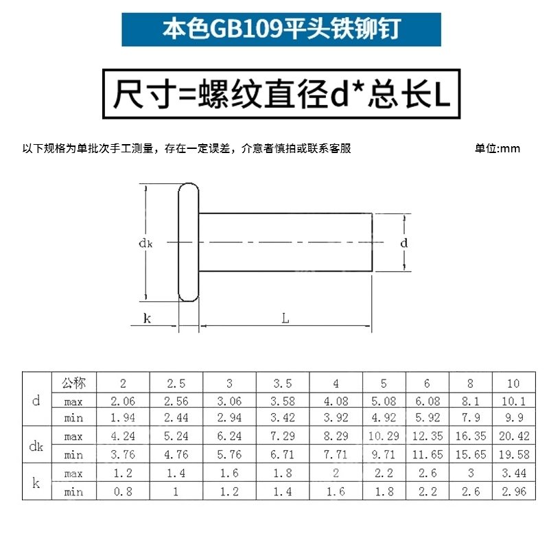 Iron flat head rivets 4 8 grade carbon steel color solid rivets GB109 M2M2 5M3M4M5M6M8 5L