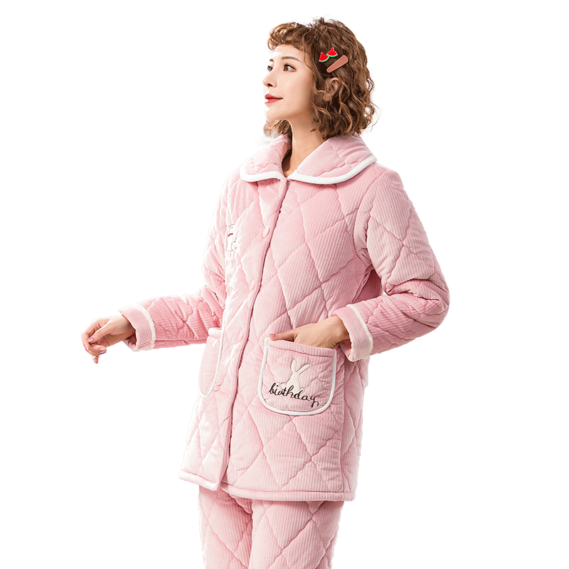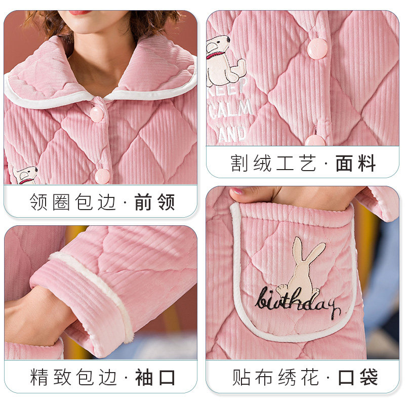 Pajamas women's winter three layers of thickened cotton pajamas women's coral fleece flannel warm in autumn and winter can wear home clothes