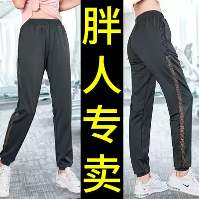 Large size sports pants women fat mm loose slim yoga trousers summer thin fitness pants bunched feet new 200 Jin