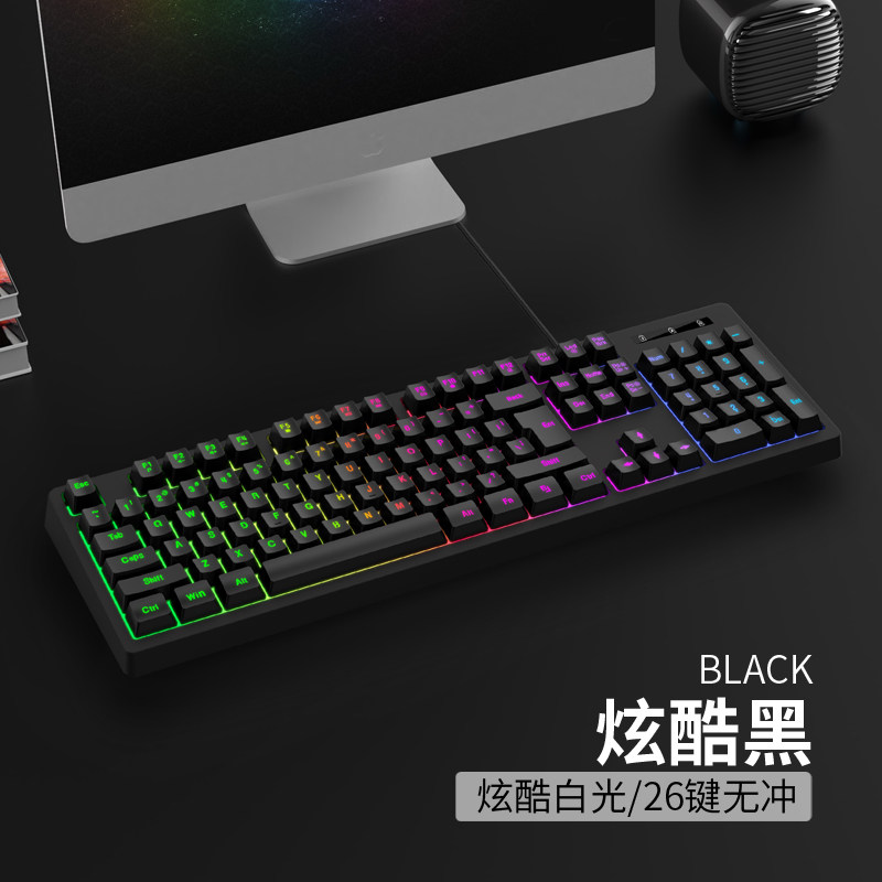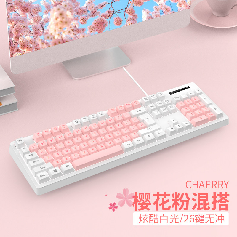 (SF)mechanical feel keyboard mouse set Desktop computer notebook game USB wired mute film Cute girl heart typing electric actually eat chicken net red green shaft