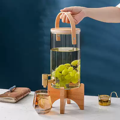 Large capacity oversized cold water bucket glass cold water bottle home high temperature resistant with faucet Nordic juice cold Kettle living room