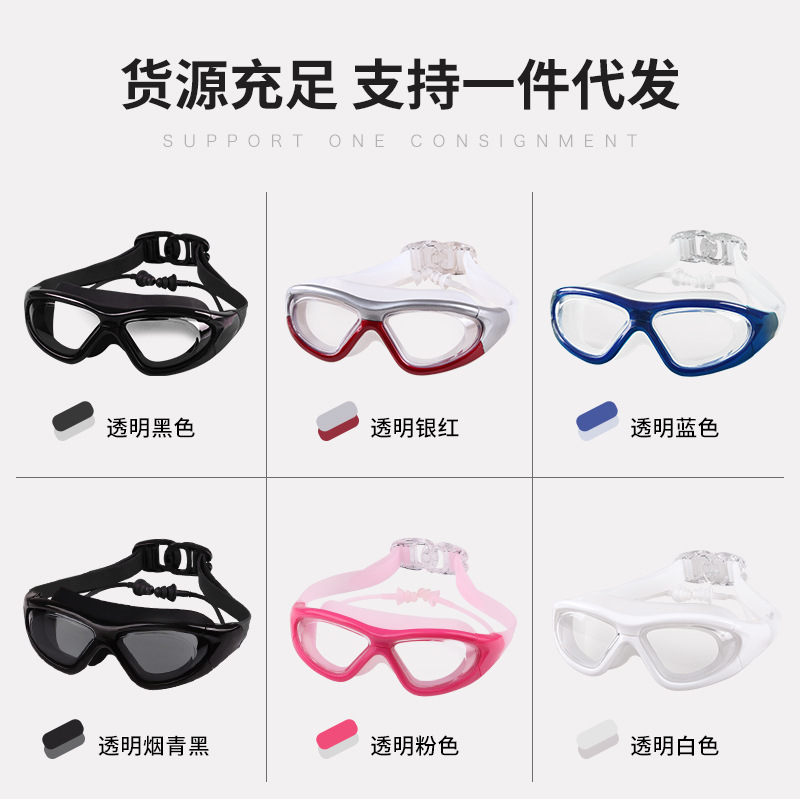 Large frame comfortable and waterproof anti-fog high-definition myopia male and female earbuds integrated swimming diving equipped swimming goggles goggles