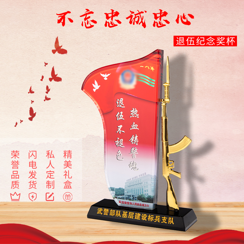 Metal Crystal Trophy Custom Red Flag Troop Veterans Send Veterans Warrior Army Brigade Retired Souvenirs