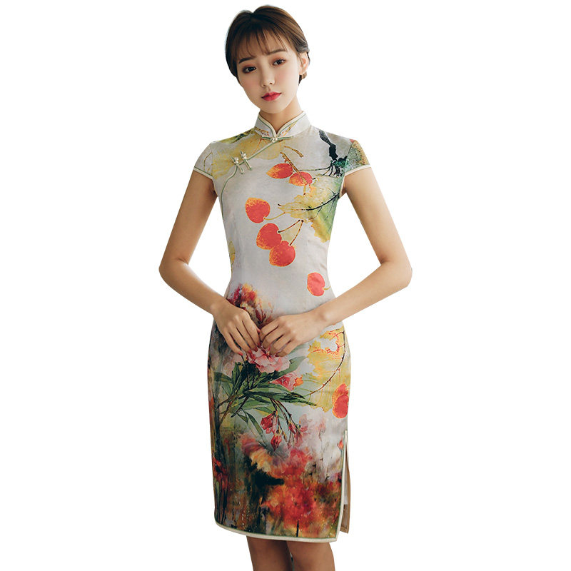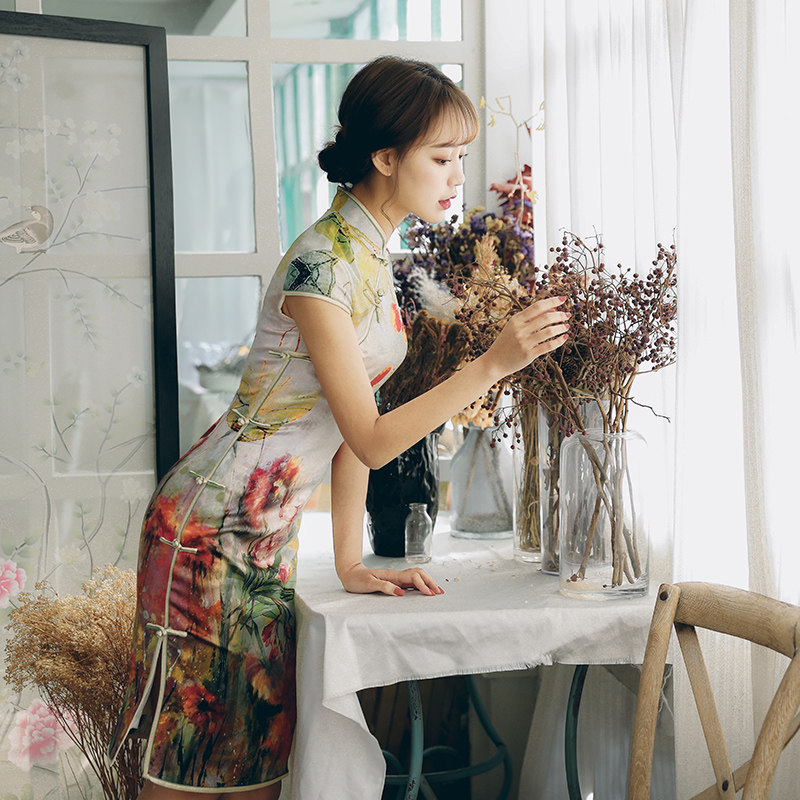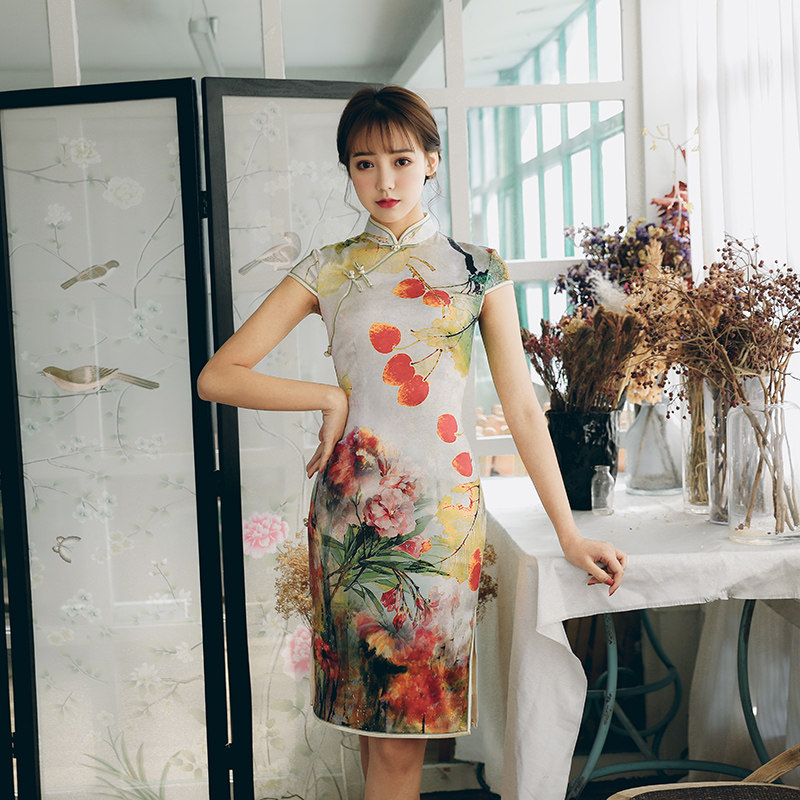 Silk cheongsam young mulberry silk high-end short dress 2021 Chinese style company annual meeting banquet performance