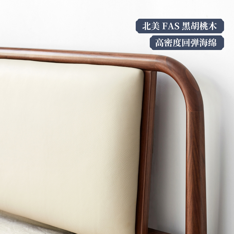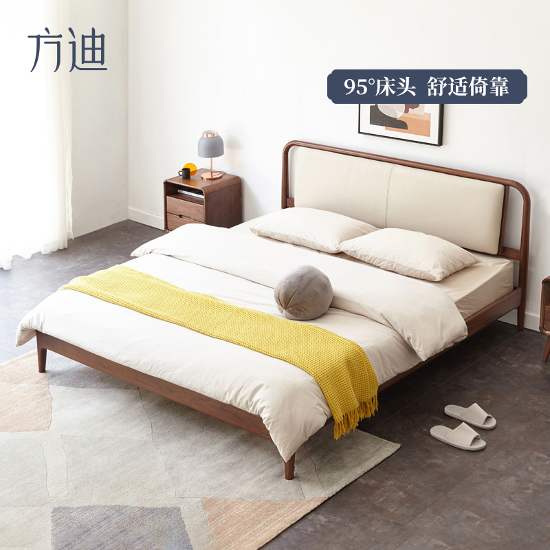 Fangdi all solid wood single double bed black walnut simple new Chinese style 1 2 1 5 1 8 meters back soft bed