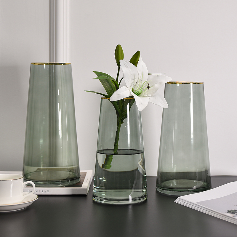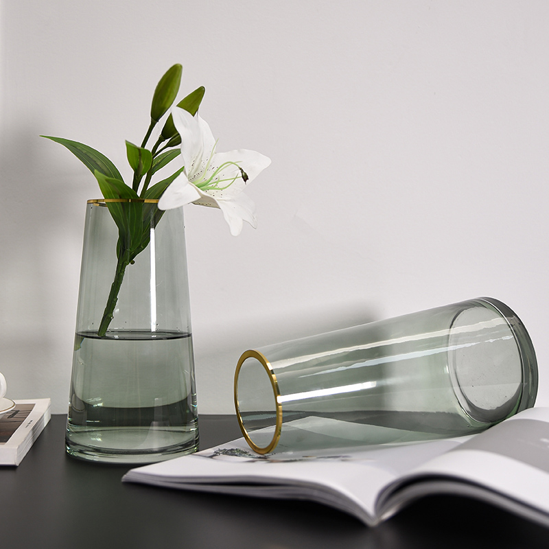 Light and luxurious vase pendulum pieces Living room Flower Arrangement Large transparent glass Water raising Nordic sketch Creative minimalist nets Red Flowers Bottle-Taobao