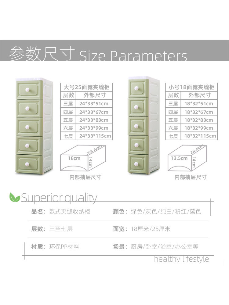 18 25 30 38cm drawer type European-style crevice storage cabinet kitchen gap shelf bathroom locker