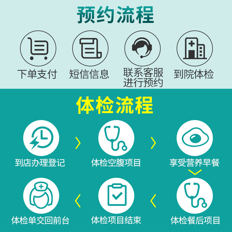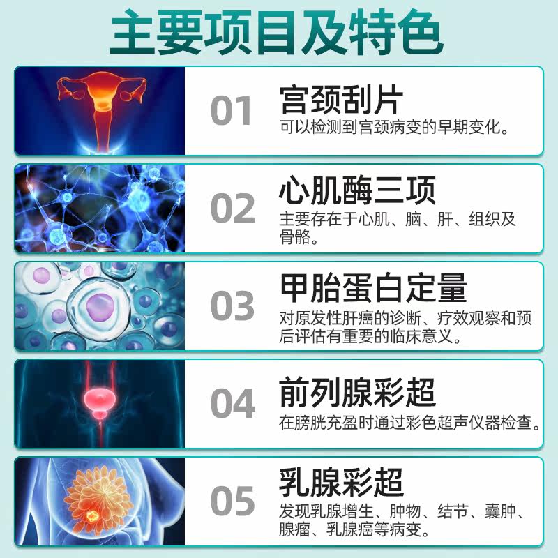 Cervical scrape Myocardial enzyme Internal medicine Helicobacter Pylori Blood Lipids Neck vaginal discharge Routine Otorhinolaryngology Stomatology Thyroid color ultrasound Chest urine Routine Male surgery General examination