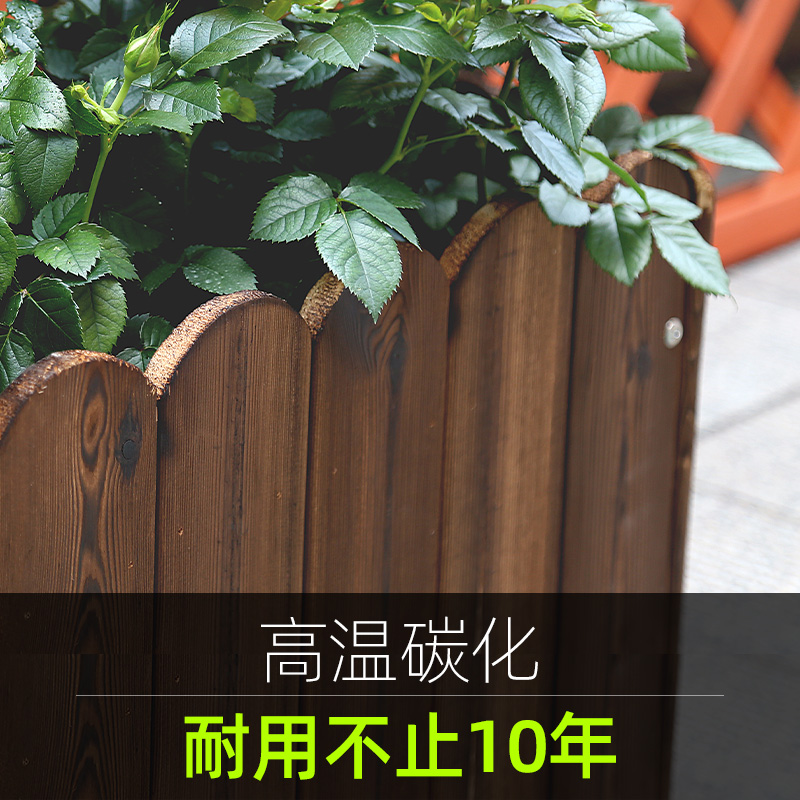 Carbonized anti-corrosion wood flower box outdoor planting tank balcony flower pot courtyard rectangular solid wood cauliflower box extra large