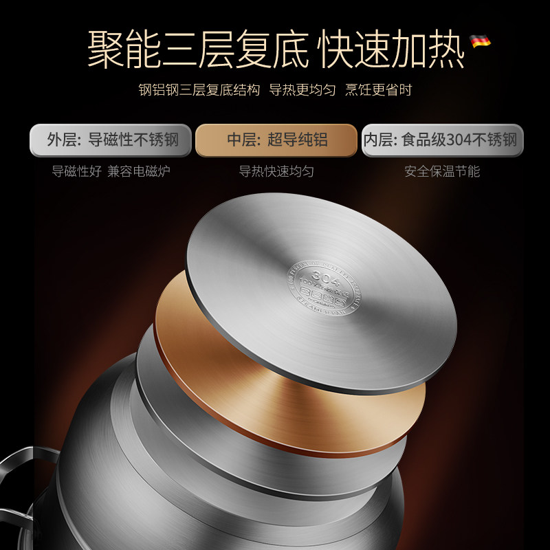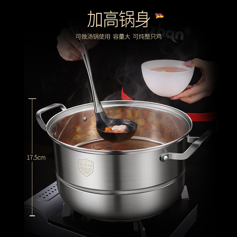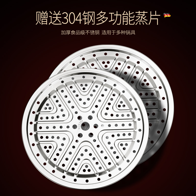 German kunzhan double-layer steamer home 304 stainless steel steamer boiled fish steamed bun thickened large size
