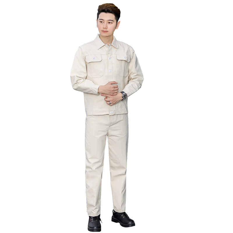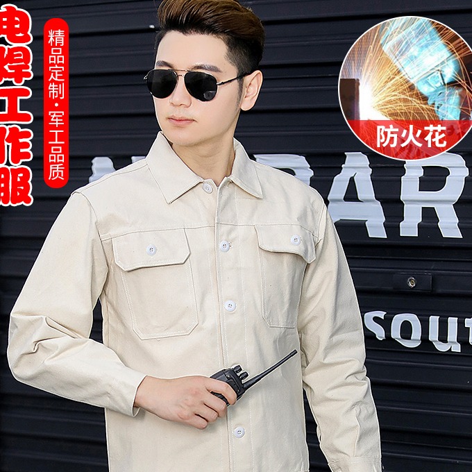 Thickness anti-static pure cotton spark hot wear-resistant long sleeve-labor welding steel mill white working clothes canvas suit