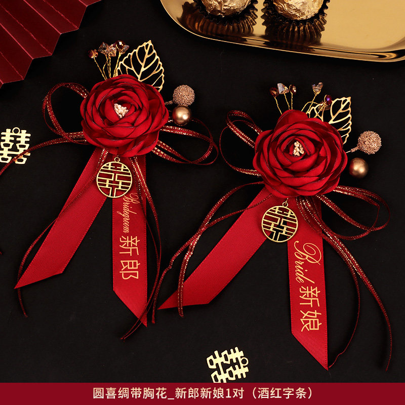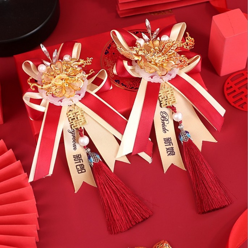 Dragon and phoenix corsage (golden dragon and golden phoenix pair) dragon and phoenix corsage (golden dragon and golden phoenix pair) dragon and phoenix corsage (wine red and golden phoenix bride one) dragon and phoenix corsage (wine red and golden dragon groom one) happy word dragon and phoenix