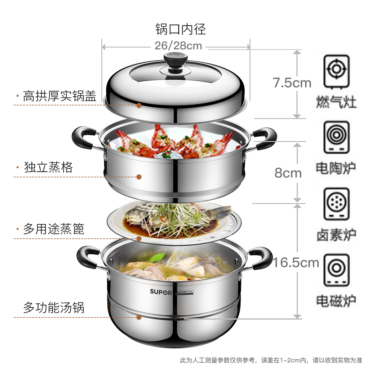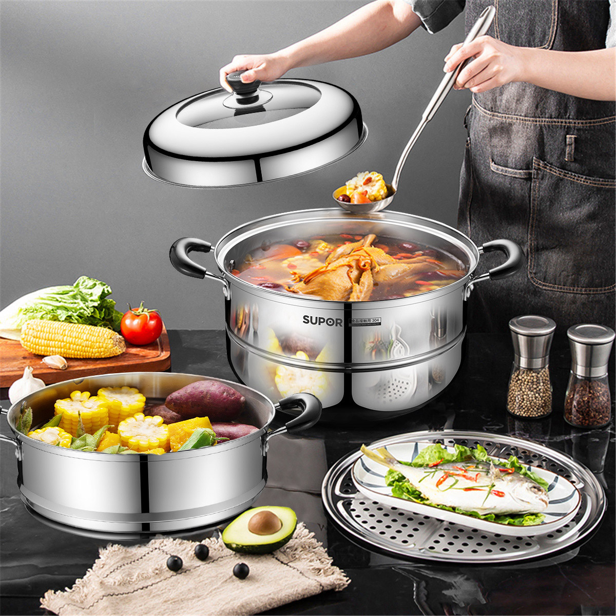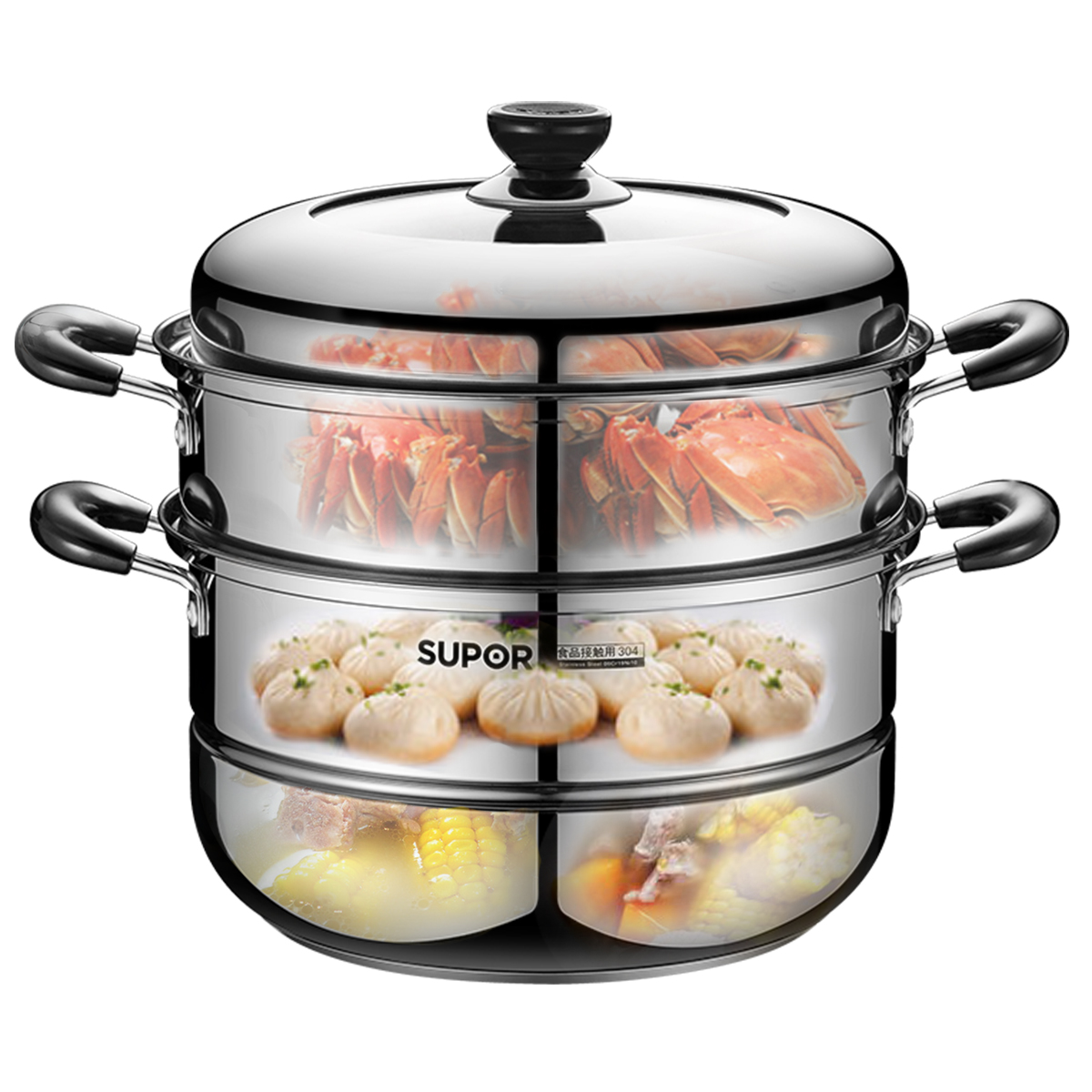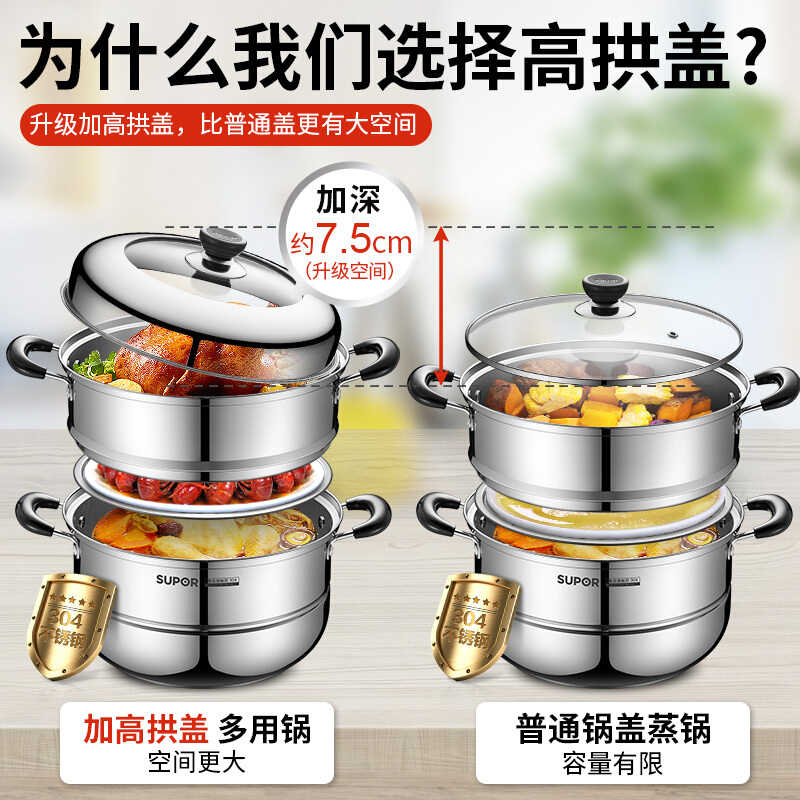 Suber steamer home 304 stainless steel steamer thick double layer large induction cooker household gas stove