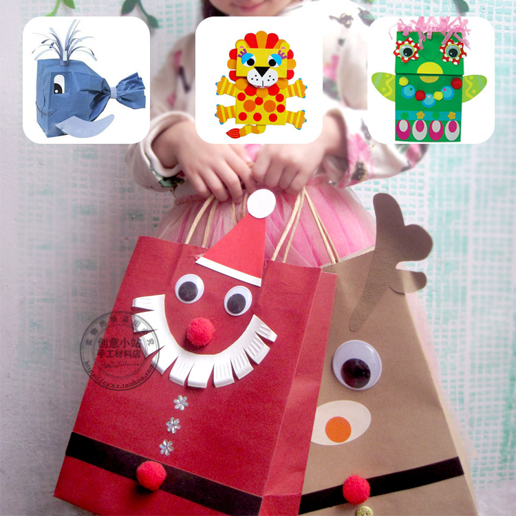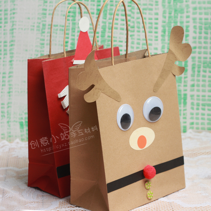 Red green kraft paper Flamingo material bag (non-finished product)Play baby material bag(non-finished product) Christmas Socks material bag(non-finished product) Dog material bag (non-finished product)Reindeer and Santa paper bag