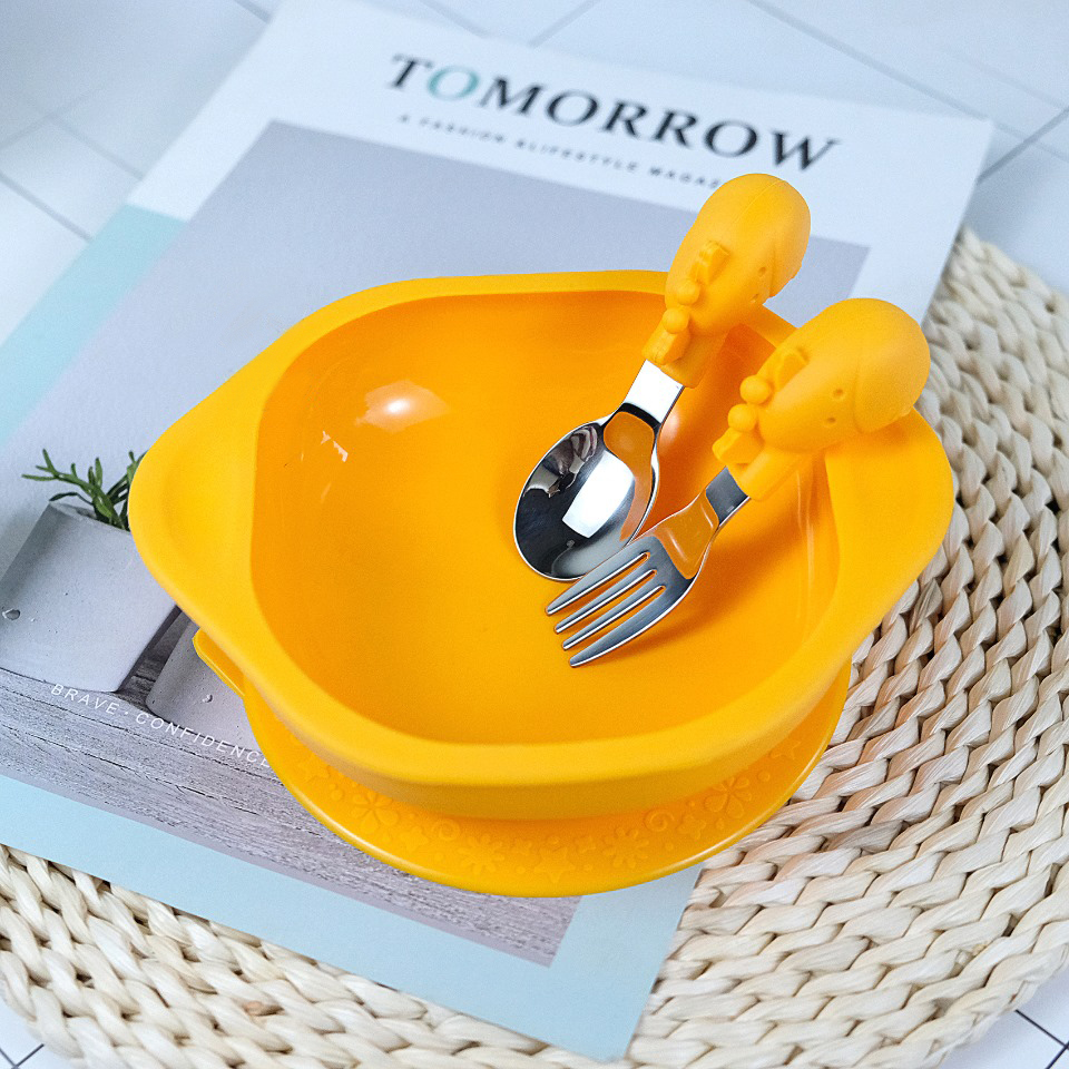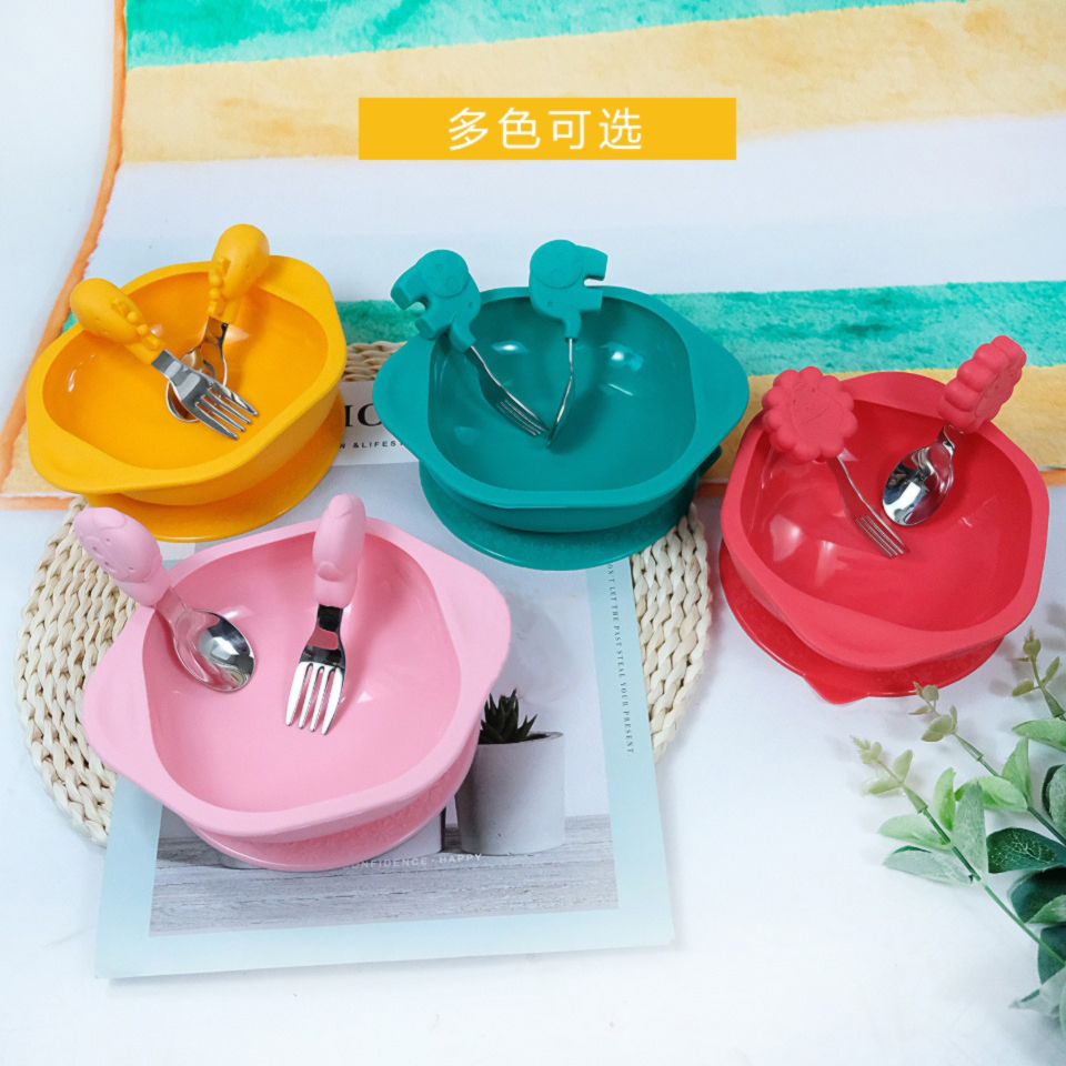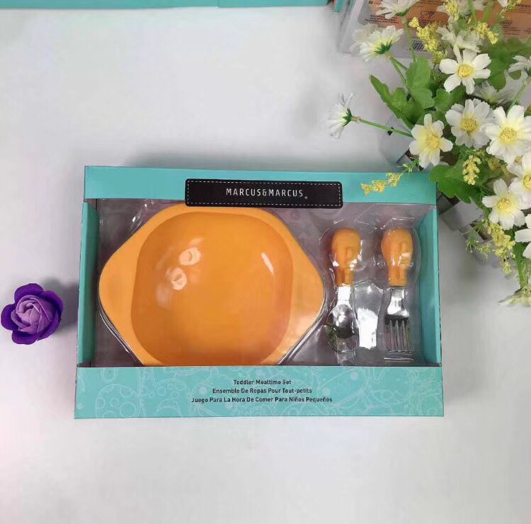 marcusmarcus baby boy child bowl spoon suit stainless steel spoon fork sidefood bowl anti-fall training cutlery