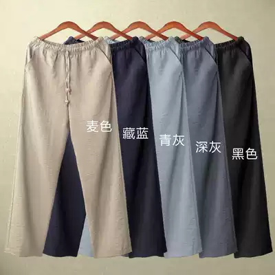 Summer cotton linen pants middle-aged and elderly casual pants men Chinese style loose high-waisted clothes thin dad clothes