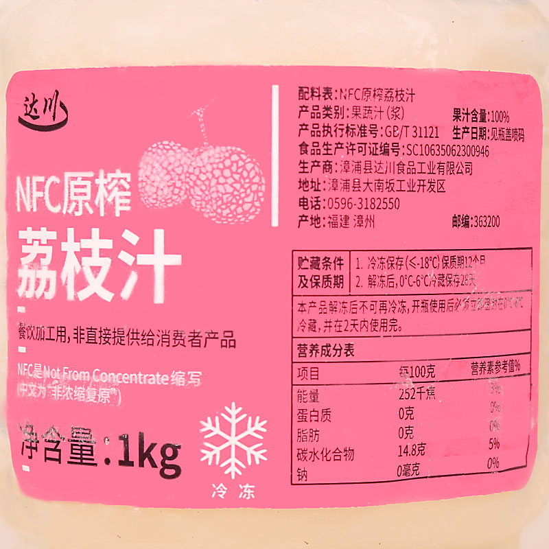 Dachuan NFC Lychee Juice No Added Lychee Freshly Squeezed Fruit Tea Mesh Red Frozen Juice Non Concentrate 1KG