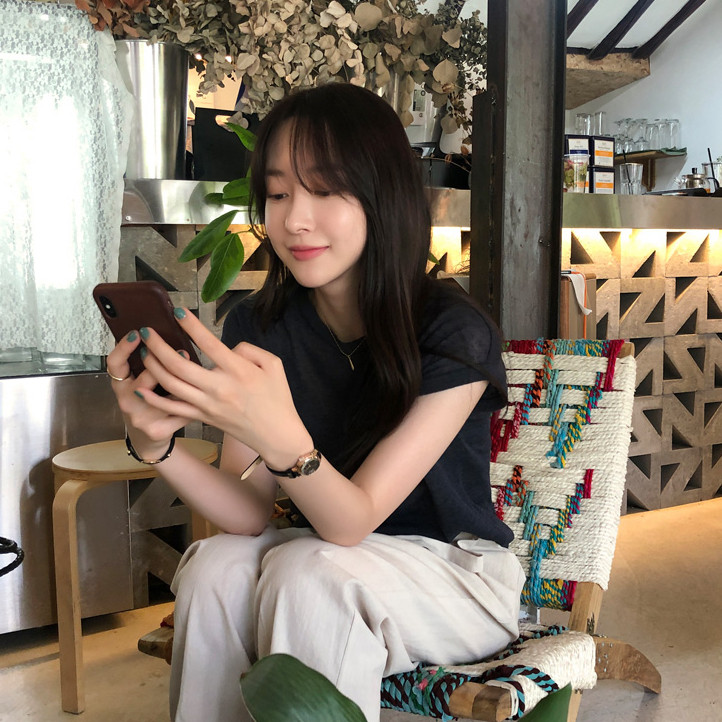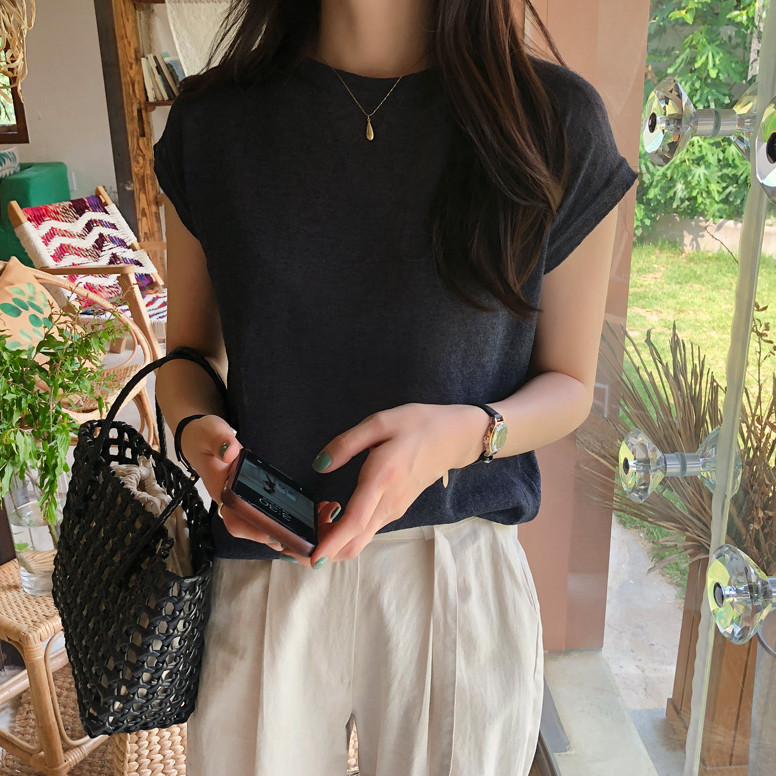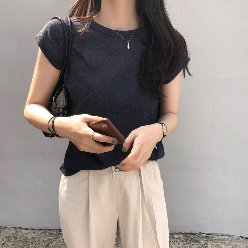 South Korean chic summer retro minimalist foundation slimming cool loose-fitting round collar short-sleeved T-shirt top girl