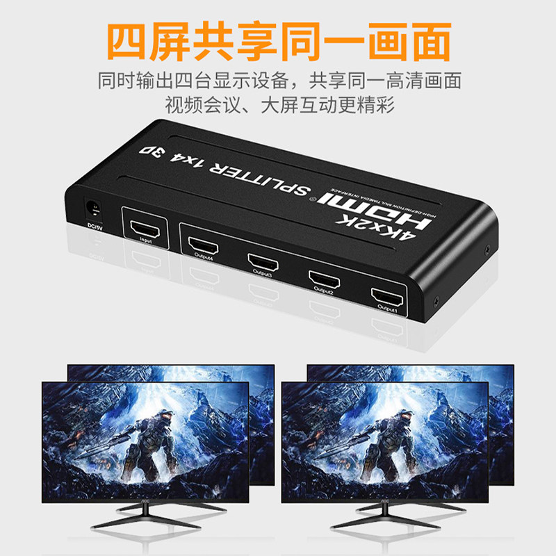 HDMI IV 4K HD distributor 3D video signal computer on board converter one-one-point four-piece connector screen screen TV projector one drag four-dimensional screen