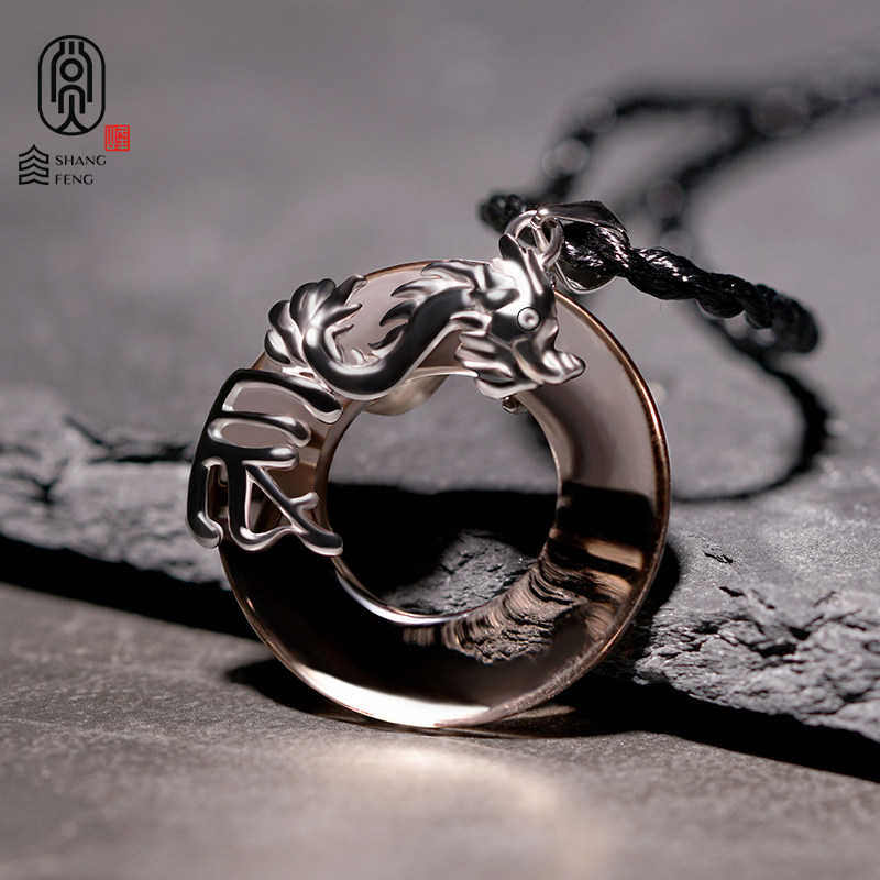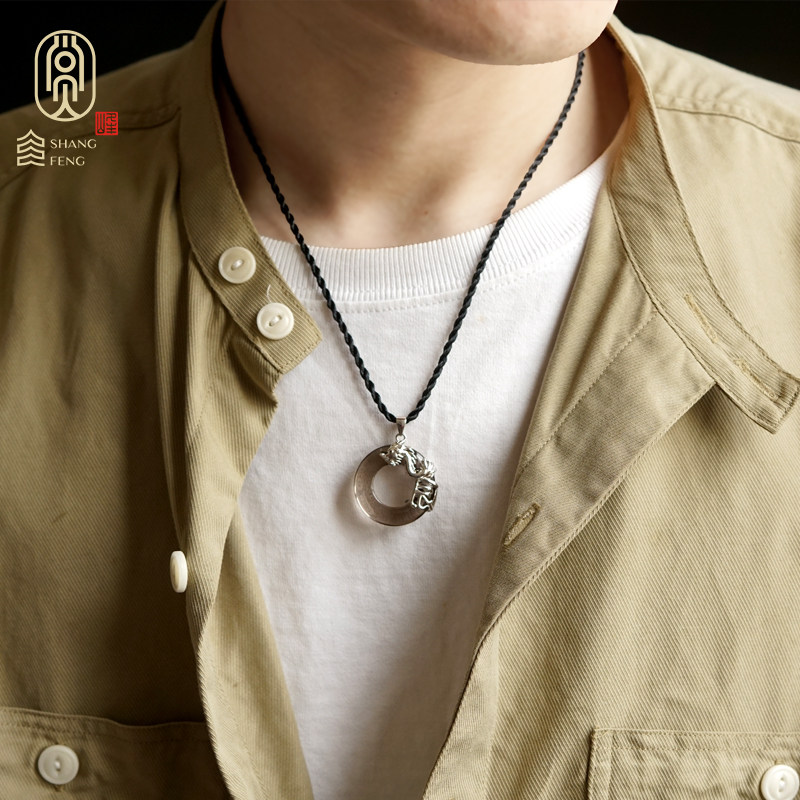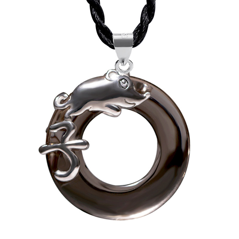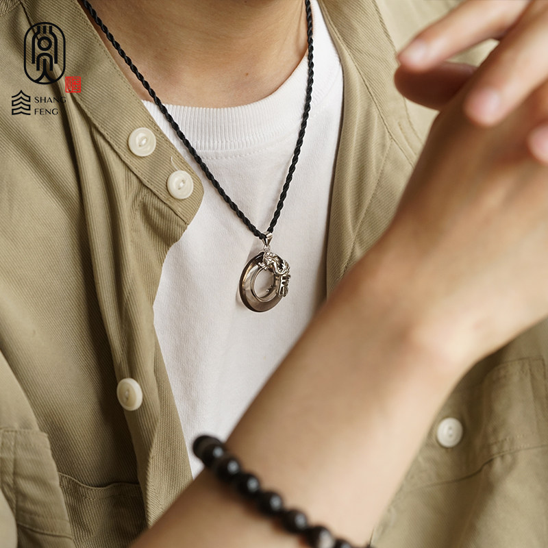 Zodiac Peace Buckle Necklace Men's Trendy Hip-Hop Men's 925 Sterling Silver Obsidian Pendant Versatile Hanging Jewelry