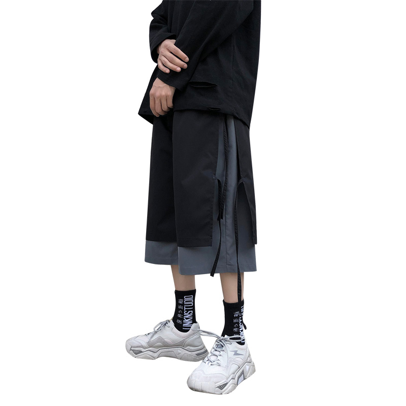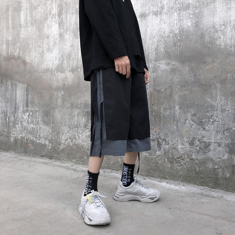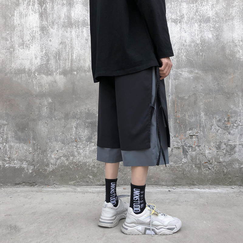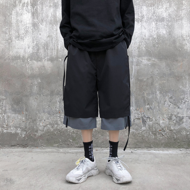 Summer trend shorts men's loose Korean style cropped pants color-blocking wide-leg hip-hop casual pants straight high street sports pants