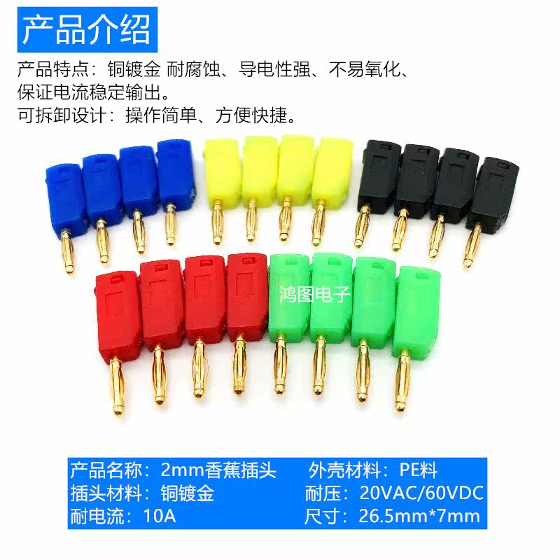 2mm superimposed banana plug PE plastic shell can be flexibly disassembled with 2mm jack lantern head at the tail of the lamp