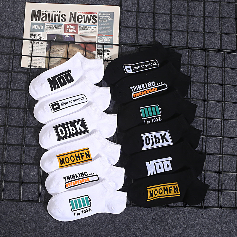 Socks men low top solid color boat socks women short tube breathable shallow socks black and white letters ins trend basketball socks