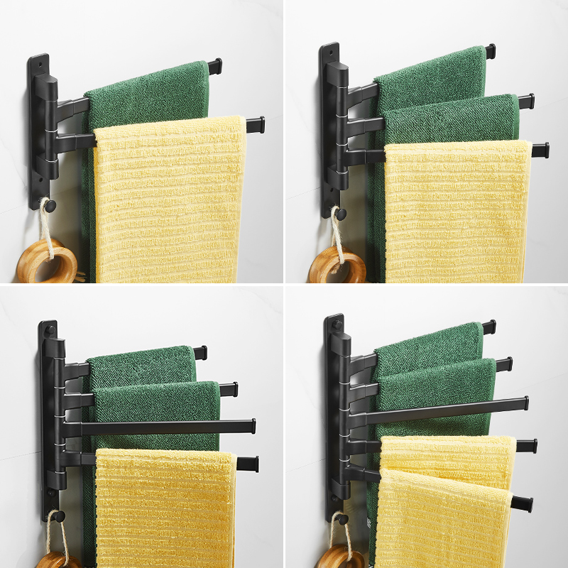 Towel rack Non-perforated space aluminum powder room bathroom storage folding activity rotating hanging towel bar extended double rod