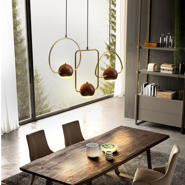 (6818-A) pendant lamp white wax wood copper-three-color light (6818-B) pendant lamp white wax wood copper-three-color light (6818-C section) pendant lamp white wax wood copper-three