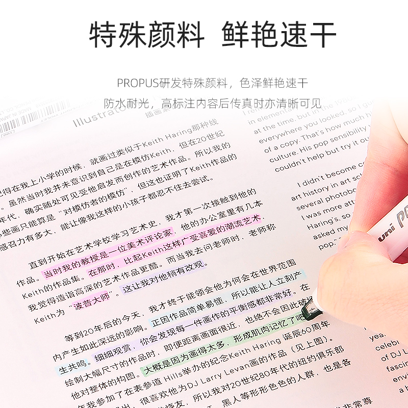 Japan UNI Mitsubishi PUS-102 103T visual window highlighter creative transparent pen head good mark light color double-headed students draw key marker pen fluorescent marker pen stationery award