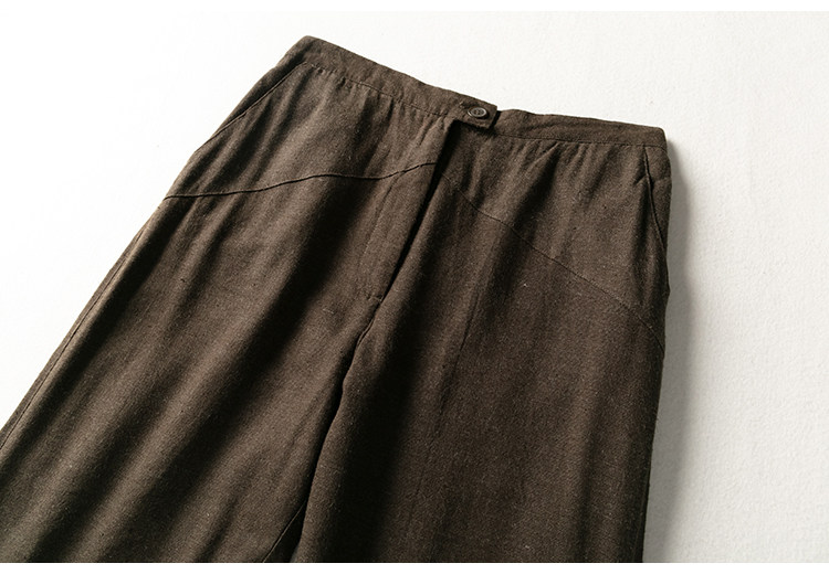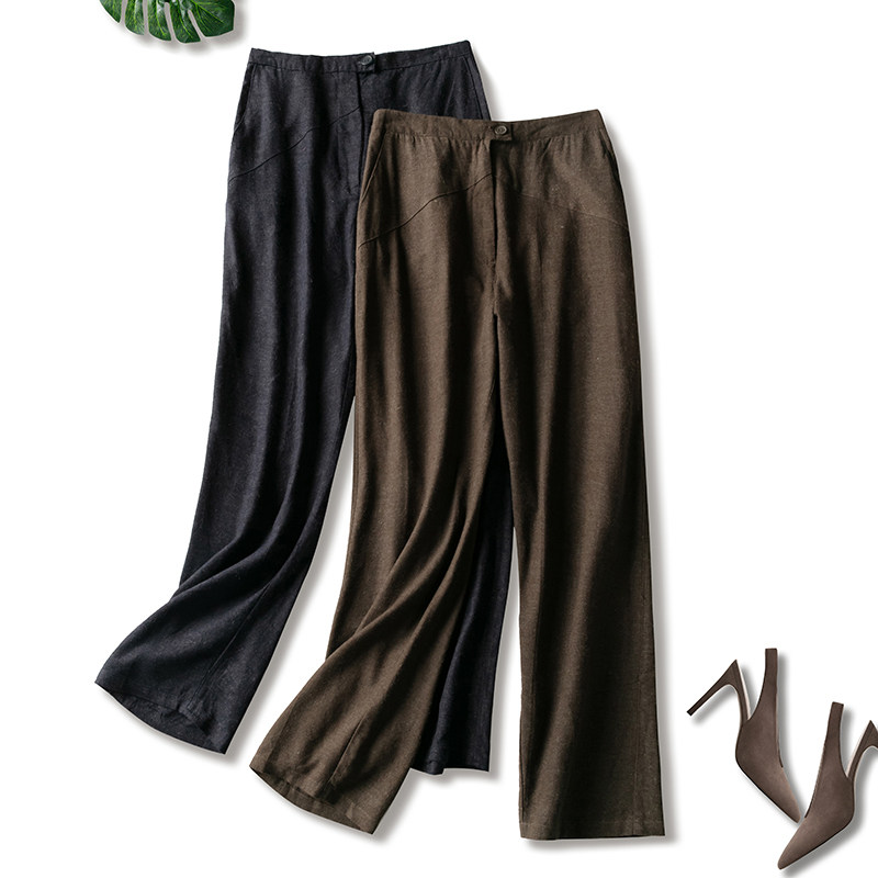 Spring foreign trade silk hemp wide-leg pants Women's thick Tussah silk oil silk loose straight pants Linen pants Wool casual pants