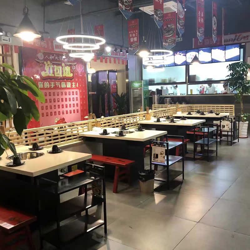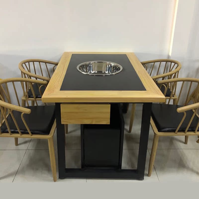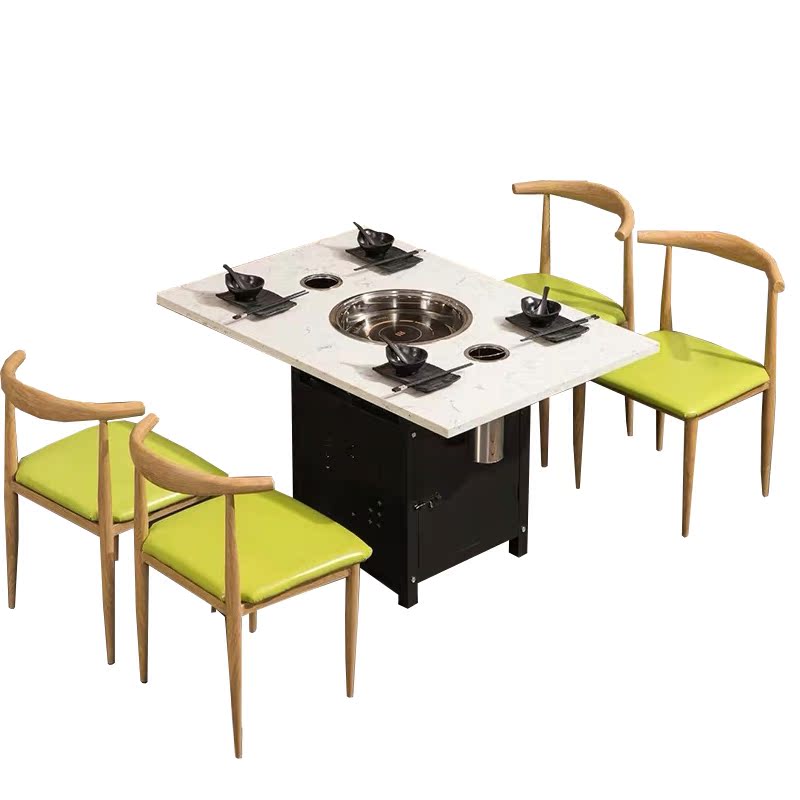 Solid wood marble smokeless purifier induction cooker skewers incense grill integrated European-style steel frame stainless steel hot pot table