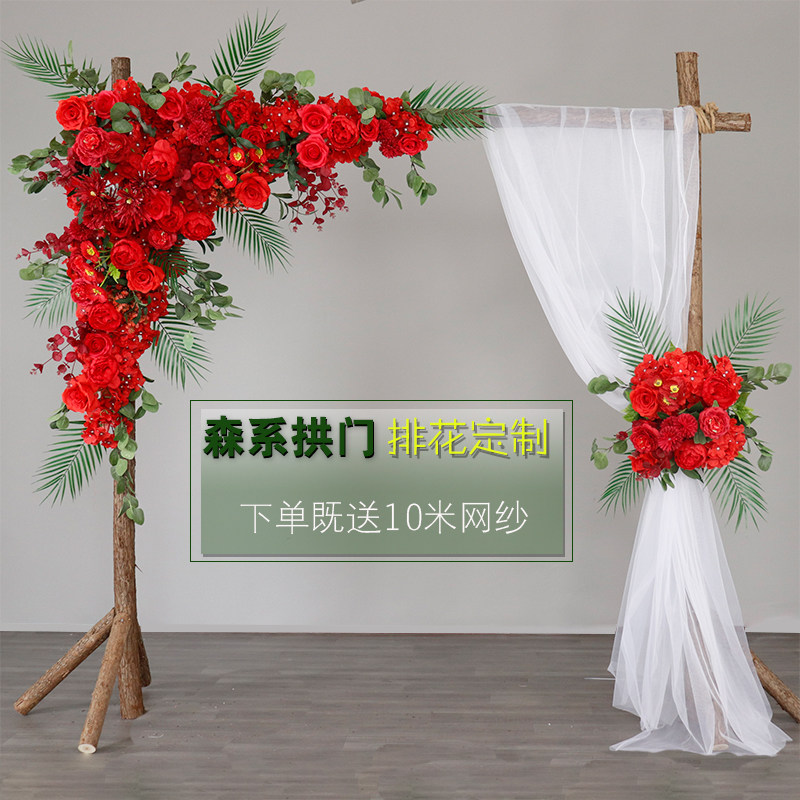 Wooden stump door (high 2 m * width 2 m) wood pile door (high 2 5 m * width 2 5 m) large red custom full range of pink custom full set of champagne custom full set of blue custom full set of large red corner flowers (