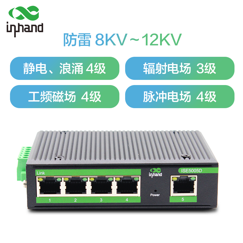 InHand Yinghan Tong Industrial Grade B Ethernet Switch 2nd floor 3 mouth 4 ports 5 one thousand trillion Non-network management type ISE5005D Internet monitoring splitter lightning protection wide temperature plug and play rail
