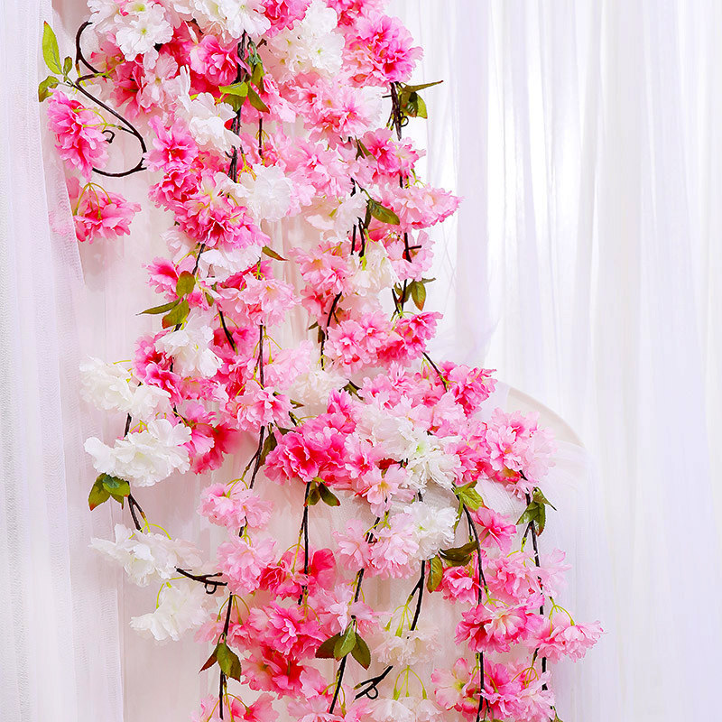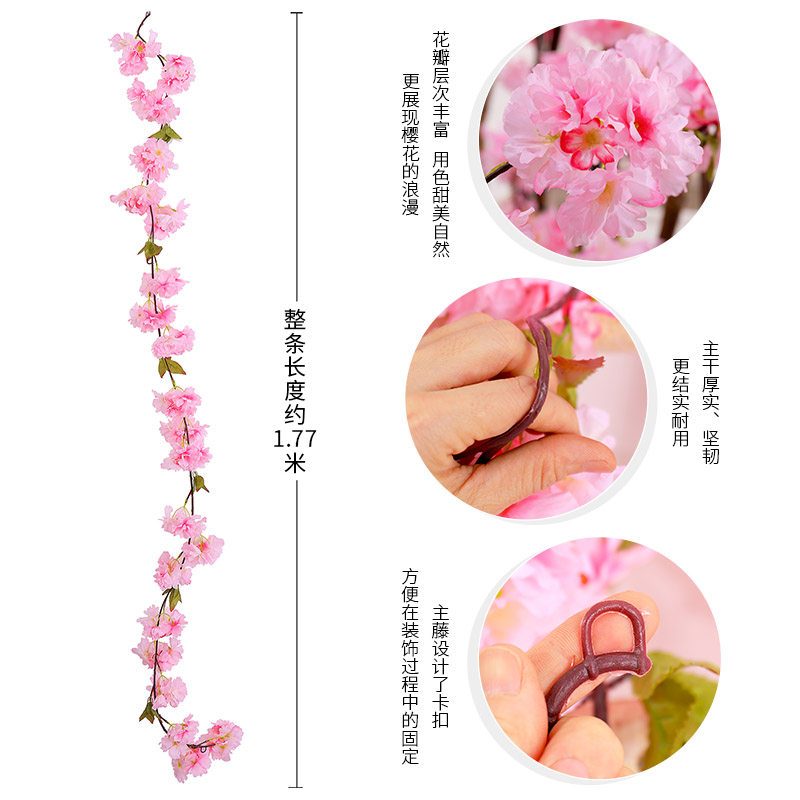 Simulation cherry blossom flower rattan fake flower rattan winding wedding air conditioning pipe occlusion decoration Plastic flower vine plant