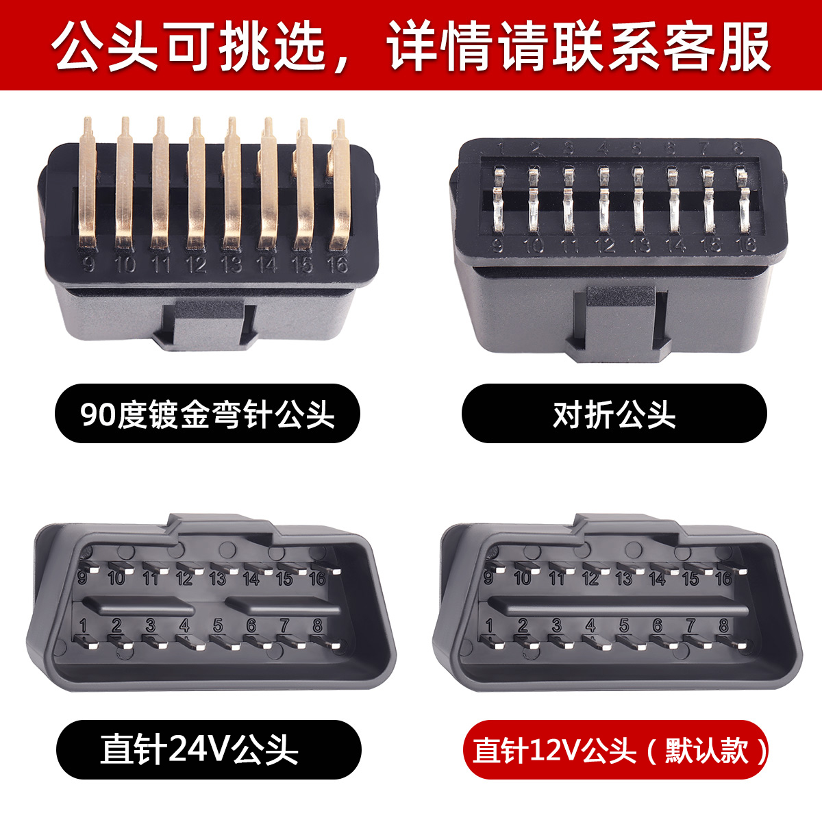 Truck J1962M Car OBD2 Male OBD16pin Connector Gold Plated 90° Bend Pin Male Housing