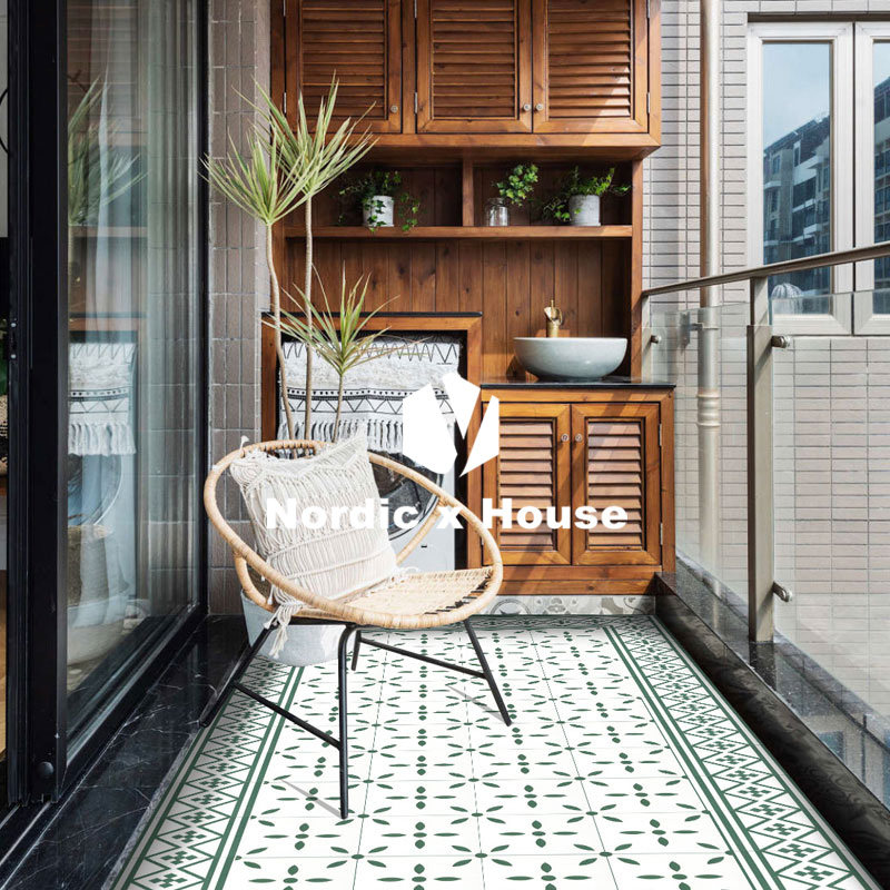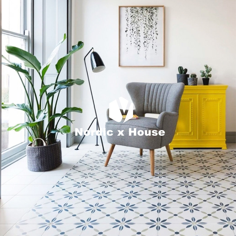 Nordic Wind Ins Retro Blue Small Flower Brick 200 Kitchen Non-slip Floor Tile Balcony Make-up Room Wall Brick Toilet Tile