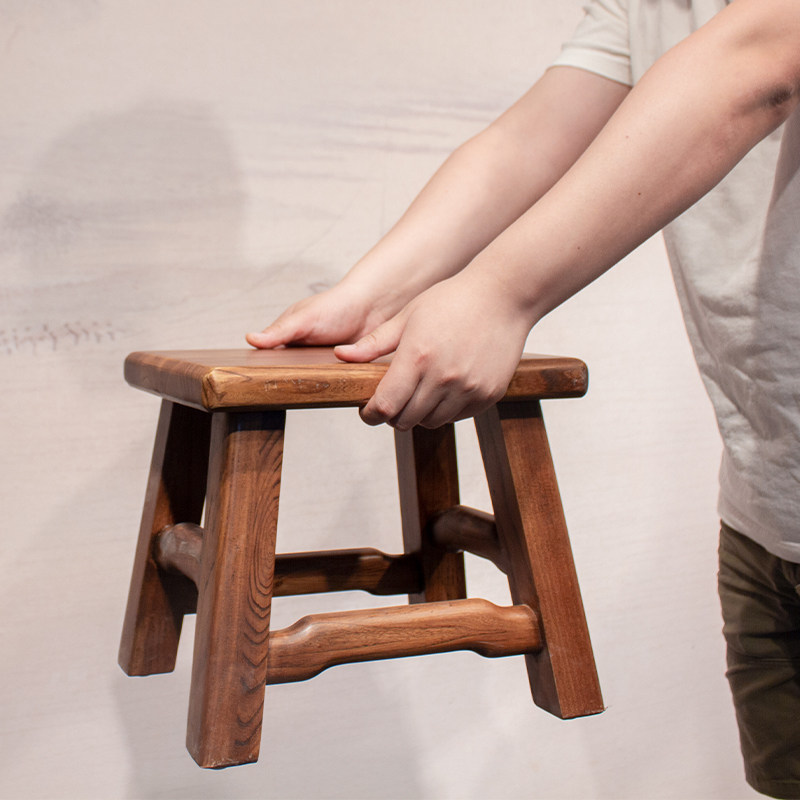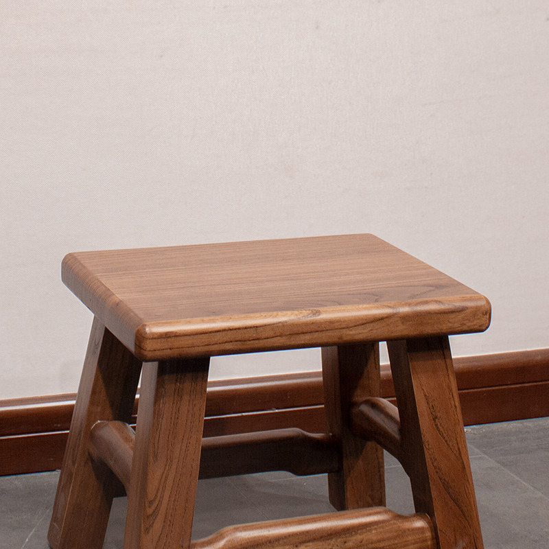 New Chinese Solid Wood Small Stool Chair Change Shoes Wood Feet Square Stool Old Elm Wood Home Living Room Sofa Children Short Bench